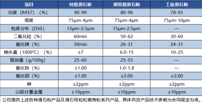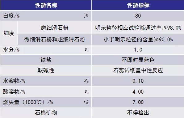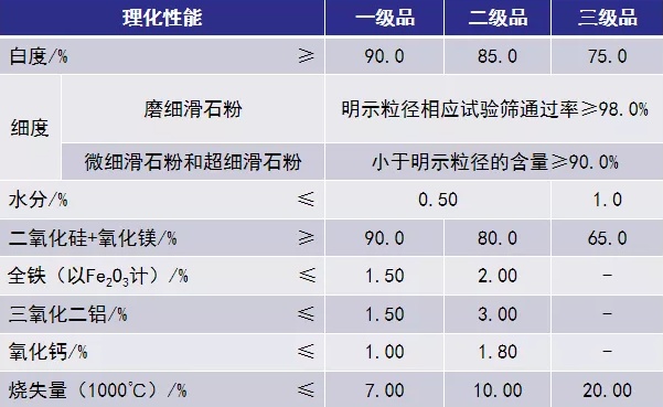 龍廣滑石產(chǎn)品主要技術(shù)參數(shù)