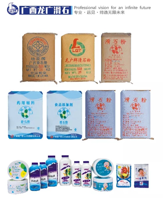 龍廣滑石不僅可提供化妝品級、醫(yī)藥-食品級、塑料樹脂級等各級別的滑石粉。且公司桂花牌200目-10000目滑石粉長期保持廣西名牌產(chǎn)品稱號,廣泛應用于醫(yī)藥、化妝、食品、工程塑料、造紙、涂料、油漆、樹脂、橡膠、陶瓷、電纜、防水材料等行業(yè)。