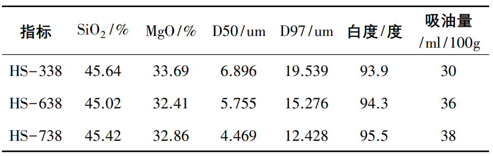 表1三種滑石的主要物理指標