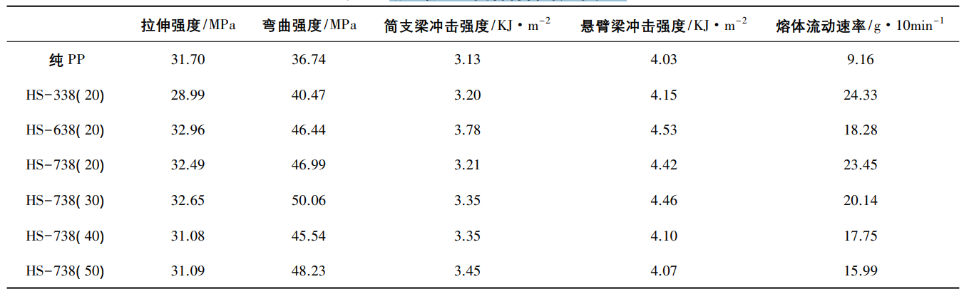 宋波等研究了HS-338、HS-638、HS-738三種不同粒徑的滑石粉對聚丙烯復合材料力學性能和加工性能的影響。