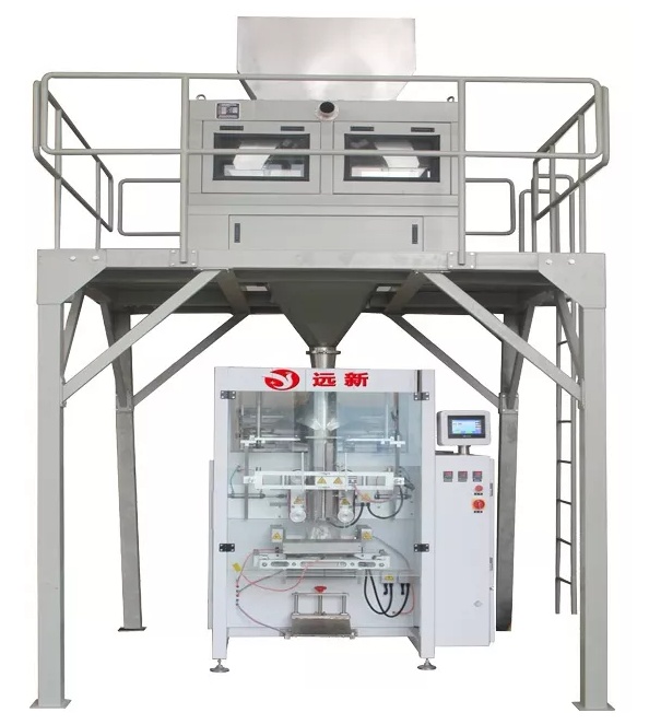 立式5000型全自動(dòng)顆粒包裝機(jī)組特別適合稱量包裝顆粒類的物料,如:大米、水稻、玉米、花生、山梨酸鉀等顆粒狀物料。