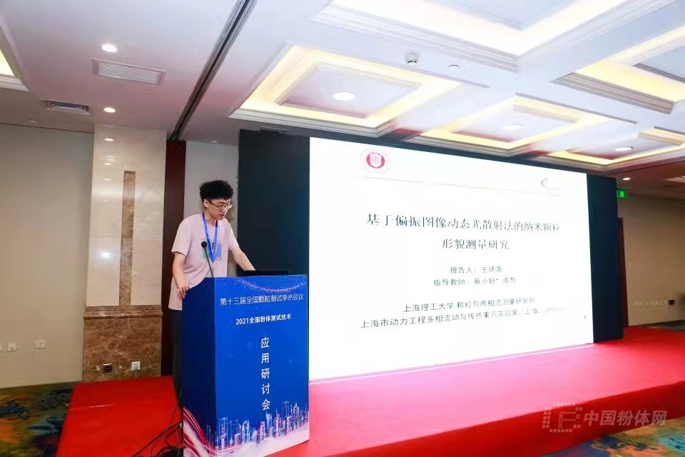 上海理工大學王炳堯作《基于偏振圖像動態光散射法的納米顆粒形貌測量研究》報告,講述了將圖像動態光散射與偏振散射結合,測量非球形顆粒大致形貌。