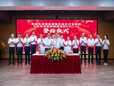 中國粉體網訊 9月30日,西藏扎布耶鹽湖綠色綜合開發利用萬噸電池級碳酸鋰項目EPC+O(設計、采購、施工及運營)合同簽約儀式在東華科技舉行。