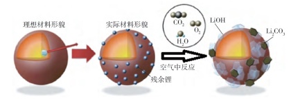 ▲三元材料暴露在空氣中后表面結(jié)構(gòu)變化(圖片來源:安富強(qiáng)等.純電動車用鋰離子電池發(fā)展現(xiàn)狀與研究進(jìn)展)