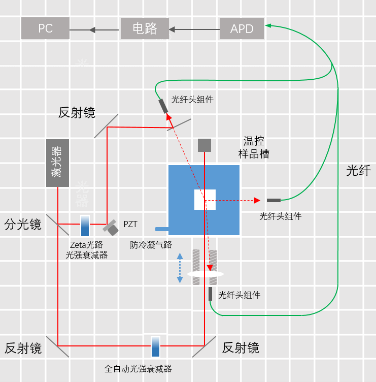 動(dòng)態(tài)光散射技術(shù)是通過(guò)測(cè)量隨機(jī)漲落的散射光信號(hào)得到散射光強(qiáng)的自相關(guān)函數(shù),再由光強(qiáng)自相關(guān)函數(shù)反演獲得顆粒的粒徑,它能夠有效、簡(jiǎn)便、快捷地測(cè)量顆粒的粒度分布。目前,動(dòng)態(tài)光散射技術(shù)因其操作簡(jiǎn)單、實(shí)時(shí)性強(qiáng)、測(cè)量時(shí)間少等優(yōu)點(diǎn),被廣泛應(yīng)用于科學(xué)研究和工業(yè)生產(chǎn)中。