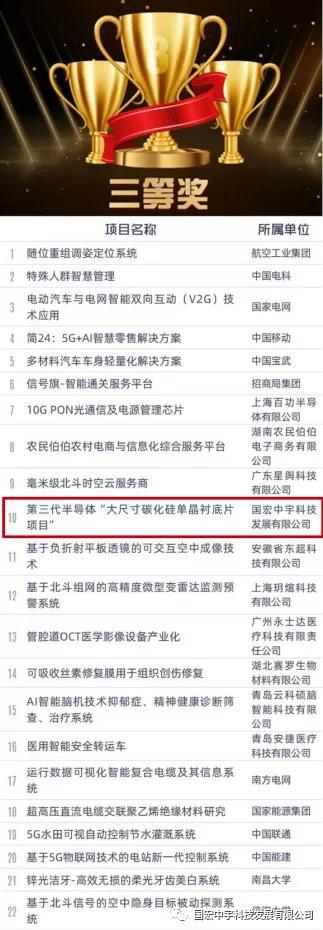 中國粉體網訊 近日,國資委公布第三屆中央企業(yè)熠星創(chuàng)新創(chuàng)意大賽獲獎名單,國宏中宇第三代半導體“大尺寸碳化硅單晶襯底片項目”赫然在列,榮獲大賽三等獎。據悉此次大賽共吸引3340個項目、2.3萬余人報名參賽。共有516個項目面向社會進行投資路演和對接, 最終有100個項目獲得一二三等獎,另有100個項目榮獲優(yōu)秀獎。