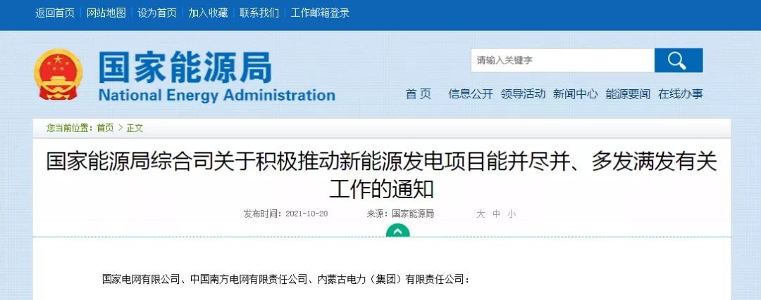 國家能源局綜合司關(guān)于積極推動(dòng)新能源發(fā)電項(xiàng)目能并盡并、多發(fā)滿發(fā)有關(guān)工作的通知