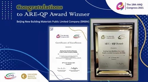 北新建材2021年“亞洲質(zhì)量卓越獎(jiǎng)”圖片來源:中國建材報(bào)