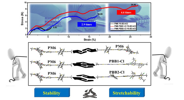 中國粉體網訊 11月1日,中國科學院青島生物能源與過程研究所傳來喜訊:該所利用三元策略構建超高拉伸性的高效有機光伏電池。該工作近期以題為“Overlapping fasten packing enables efficient dual-donor ternary organic solar cells with super stretchability”發表在國際能源領域知名期刊Energy & Environmental Science上。論文第一作者為該所博士生王劍曉,通訊作者為該所包西昌研究員、文樹光副研究員及上海光源的楊春明副研究員。