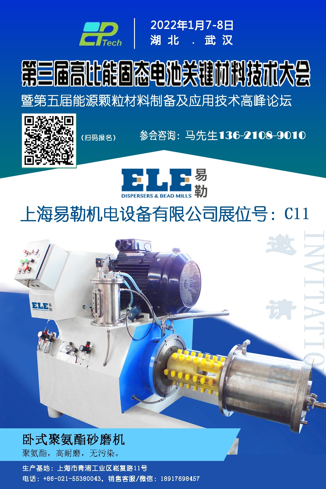 第三屆高比能固態(tài)電池關(guān)鍵材料技術(shù)大會定于2022年1月7-8日在湖北武漢東方建國大酒店舉行。400+電池人將齊聚一堂,共襄盛舉,共同推動行業(yè)發(fā)展。