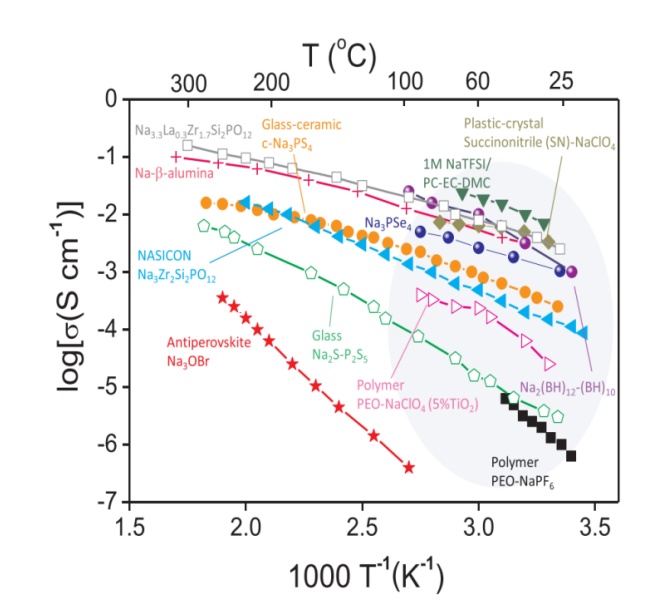 圖:常見鈉離子固態(tài)電解質(zhì)的離子電導(dǎo)率