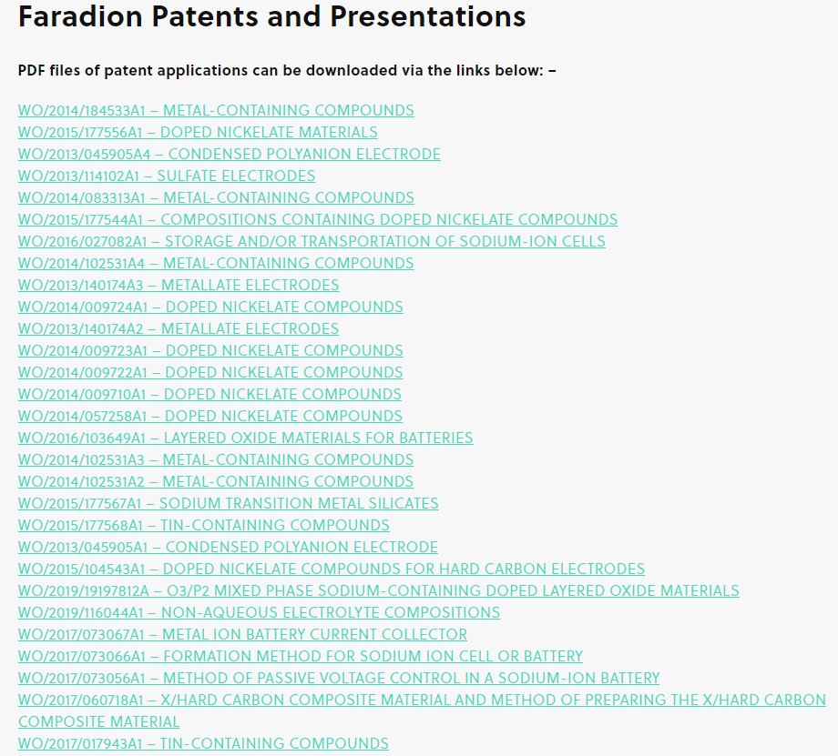 圖:Faradion專利一覽