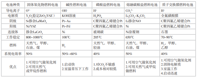 燃料電池分類和特點(來源:仙存妮.固體氧化物燃料電池技術發展概述及應用分析)