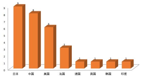 碳化物先進陶瓷材料燒結技術全球前 30 主要申請人國別分布