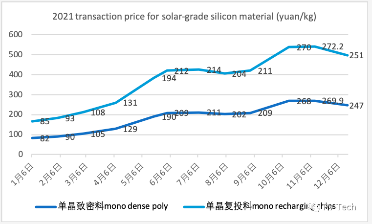 事實上,過去兩周多晶硅的降價通道已經開啟,硅料報價較27萬元/噸的高點開始回落,成交均價來到25萬元/噸以下。