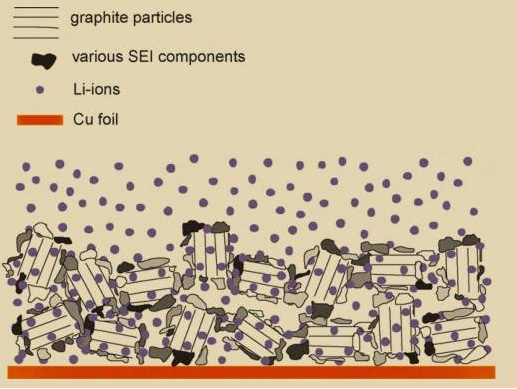 另一方面,SEI膜具有有機溶劑不溶性,在有機電解質溶液中能穩定存在,并且溶劑分子不能通過該層鈍化膜,從而能有效防止溶劑分子的共嵌入,避免了因溶劑分子共嵌入對電極材料造成的破壞,因而大大提高了電極的循環性能和使用壽命。