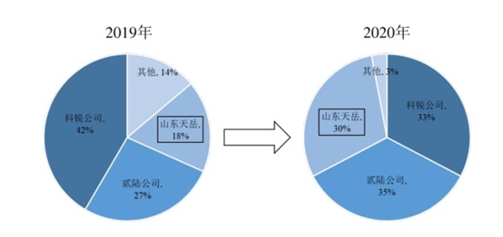近年來,天岳先進(jìn)在半絕緣型碳化硅襯底領(lǐng)域市場占有率大幅提升,已進(jìn)入行業(yè)第一梯隊(duì),直接與國外巨頭競爭。根據(jù)國際知名行業(yè)咨詢機(jī)構(gòu)Yole的統(tǒng)計(jì),2019-2020年,在半絕緣型碳化硅襯底領(lǐng)域,天岳先進(jìn)按銷售額統(tǒng)計(jì)的市場份額均位列全球第三。2020年,天岳先進(jìn)市場占有率較上年增長12個(gè)百分點(diǎn)達(dá)到30%,大大縮小了與國外競爭對手的差距。