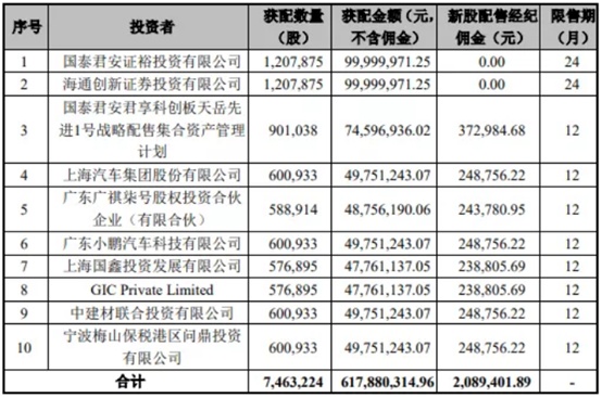 在戰(zhàn)略投資者繳款認(rèn)購的名單中,寧德時(shí)代旗下問鼎投資、廣汽集團(tuán)旗下廣祺柒號、上汽集團(tuán)、小鵬汽車均現(xiàn)身投資榜。