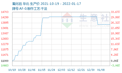 1月17日國內(nèi)部分地區(qū)氟化鋁報價: