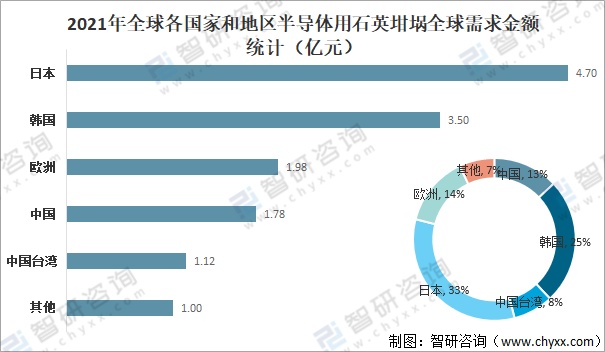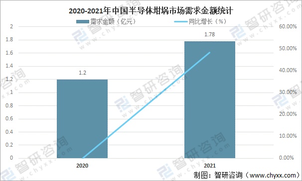 2021-2022年全球半導體用石英坩堝全球需求金額統計及預測