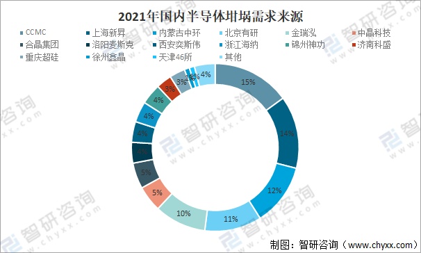 目前在光伏石英坩堝領域,憑借著價格優勢,我國企業已占據絕大部分的市場份額;在半導體石英坩堝領域,伴隨著國外半導體產業逐漸轉移至國內,以及國內半導體硅片廠商的蓬勃發展,作為其重要配套原輔料供應行業,石英坩堝制造領域獲得了較快的發展,產品正逐漸實現進口替代,國內半導體坩堝需求主要來自CCMC、上海新升、北京有研、金瑞泓、中環等國產半導體硅片的領軍企業;約占市場份額60%以上。