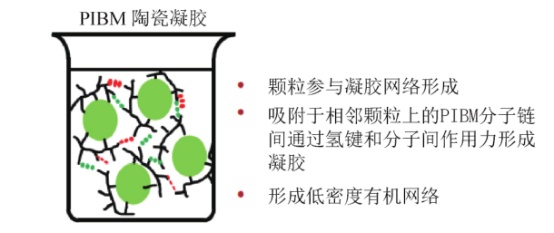 與傳統(tǒng)的原位固化體系相比,自發(fā)凝固體系僅采用一種叫異丁烯和馬來酸酐共聚物的銨鹽(簡稱PIBM)就可以實(shí)現(xiàn)Al2O3的自發(fā)凝固成型。