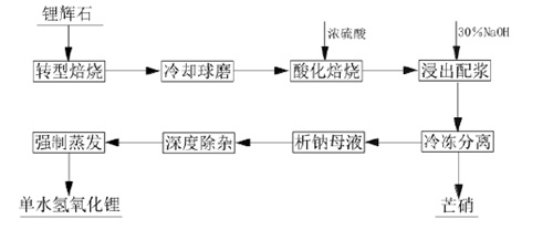(Na2SO4·10H2O),冷凍料漿經離心分離、深度除雜、結晶干燥后,可制得單水氫氧化鋰產品。其工藝流程如圖。