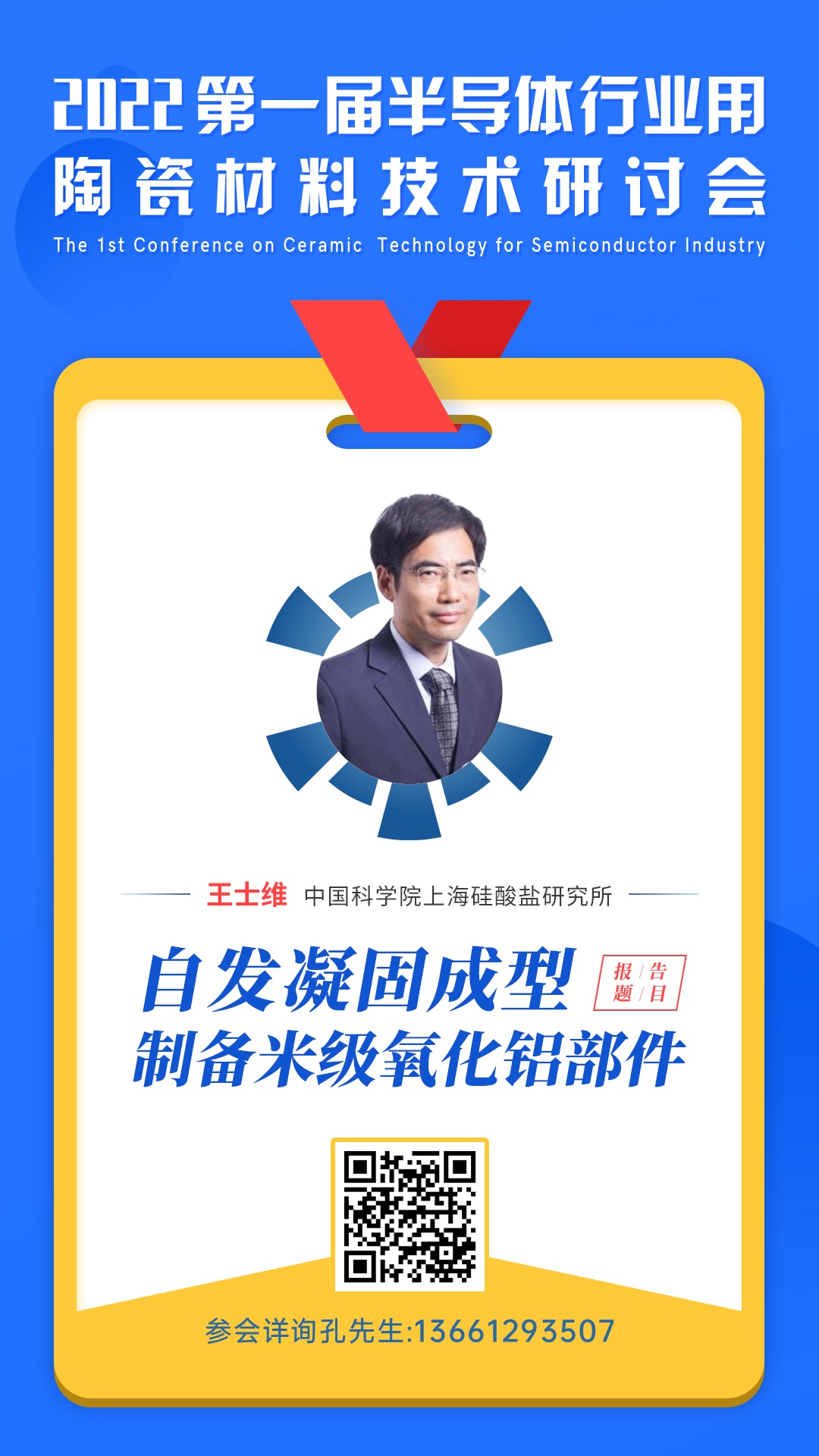 中國粉體網將在山東濟南舉辦第一屆半導體行業用陶瓷材料技術研討會,屆時,來自中國科學院上海硅酸鹽研究所的王士維研究員將帶來題為《自發凝固成型制備米級氧化鋁部件》的報告。在報告中,王士維研究員將針對基于自發凝固成型的大尺寸氧化鋁制備的成套技術進行詳細介紹。