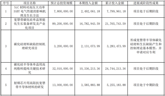 在研發(fā)方面,報告期內(nèi),公司堅(jiān)持以技術(shù)與研發(fā)驅(qū)動為引領(lǐng),推動產(chǎn)品成本與售價的持續(xù)降低,加快碳化硅材料在下游領(lǐng)域的迭代應(yīng)用。2021年,公司持續(xù)加大研發(fā)投入,研發(fā)實(shí)力不斷增強(qiáng),取得了豐碩的研發(fā)成果。2021年,公司研發(fā)費(fèi)用7,373.61萬元,占營業(yè)收入的14.93%,研發(fā)費(fèi)用同比增加了62.05%。依托“項(xiàng)目 B”、“8 英寸寬禁帶碳化硅半導(dǎo)體單晶生長及襯底加工關(guān)鍵技術(shù)項(xiàng)目”等研發(fā)項(xiàng)目,公司在加快研發(fā)大尺寸碳化硅襯底以及提升導(dǎo)電型襯底關(guān)鍵指標(biāo)等方面獲得突破性進(jìn)展。