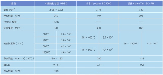 表:中國建筑材料科學研究總院研制的碳化硅產品性能與外企產品性能對比