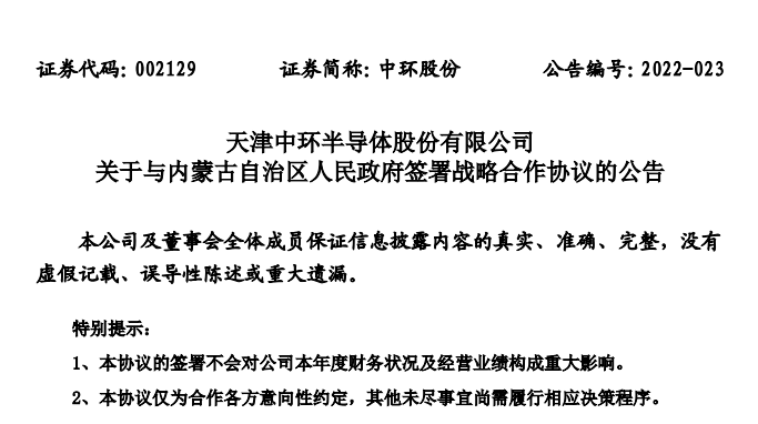 此次合作將進一步打造形成內蒙古中環產業城,建成具備國際競爭力、國內最重要的單晶硅材料制造產業基地,延鏈、補鏈、強鏈,打造中國“硅谷”。