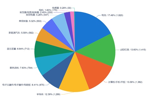 如圖1-1所示,目前石墨烯散熱技術(shù)的熱點(diǎn)應(yīng)用領(lǐng)域主要集中在:(1)電池領(lǐng)域;(2)LED領(lǐng)域;(3)IT產(chǎn)品領(lǐng)域;(4)半導(dǎo)體領(lǐng)域;(5)電子元器件領(lǐng)域;(6)顯示裝置領(lǐng)域。