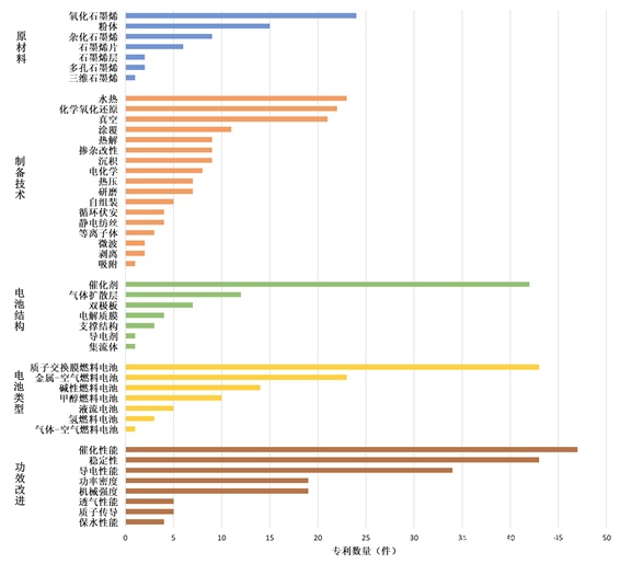 石墨烯燃料電池領(lǐng)域技術(shù)熱點(diǎn)主要集中在以下幾個(gè)方面,如圖2-2所示: