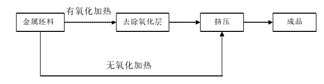 熱擠壓是指將坯料加熱至再結晶溫度以上,使其在強烈的擠壓力作用下,從擠壓模口中流出或流入細小的模腔中,最終獲得所需加工件的壓力加工方法。通常熱擠壓的工藝為:首先將坯料加熱到需要的溫度,若坯料表面有氧化皮產生,則應立即將其去除,之后立即將坯料裝填入型腔內進行擠壓,經過單道次擠壓即可得到所需工件。其工藝流程如圖5所示。
