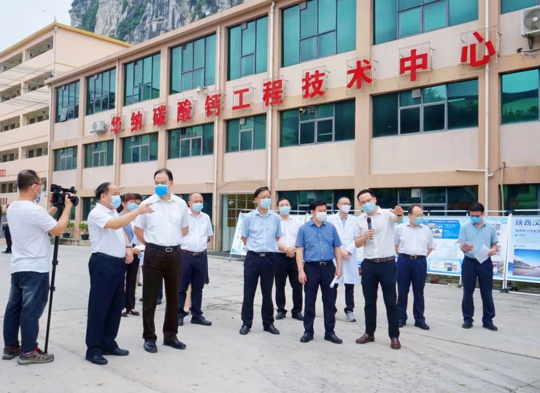 2022年4月24日上午,武鳴區人民政府區長尹玉林、城區政府辦公室副主任孫羽一行蒞臨廣西華納新材料股份有限公司考察指導工作。在考察過程中,尹玉林區長首先實地參觀了解年產30萬噸納米碳酸鈣項目場地平整及施工情況,隨后開展了座談交流,詳細了解項目現階段建設情況、廠區布局以及未來的發展規劃。