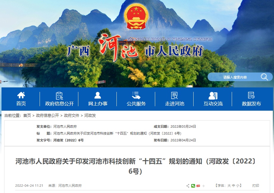 中國粉體網訊 2022年3月24日,廣西河池市人民政府印發《河池市科技創新“十四五”規劃》,明確指出,十四五期間將聚焦產業發展重大需求,強化“千億百億”產業工程和“雙百雙新”重大工業項目工程科技支撐。
