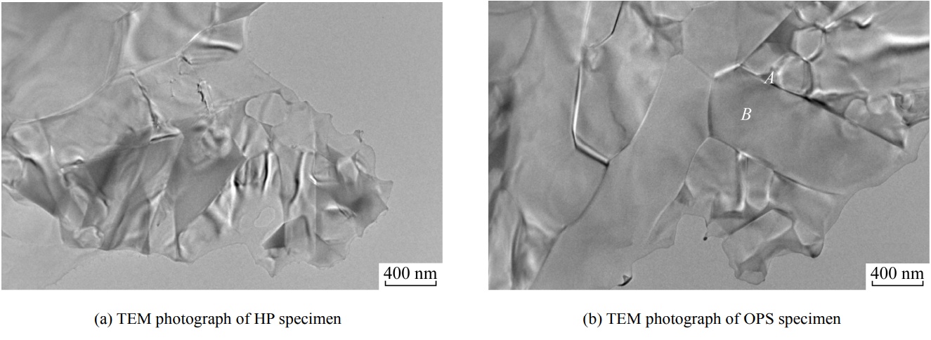 熱壓燒結(HP)與振蕩壓力燒結(OPS)TEM晶相對比(圖片來源:韓耀等,《振蕩壓力對高性能氮化硅陶瓷燒結致密化的影響》)