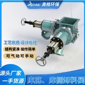 該設備用于粉料貯倉底部或側面卸料用,設備帶有流化裝置,卸料時能使物料流態化排出,通過輸送管道或斜槽,配合散裝機直接裝料,該系統有氣動和手動兩種控制方式,氣動用電磁閥控制氣缸伸縮運動,實現卸料閥門的啟閉:手動為轉動手輪啟閉閥門。