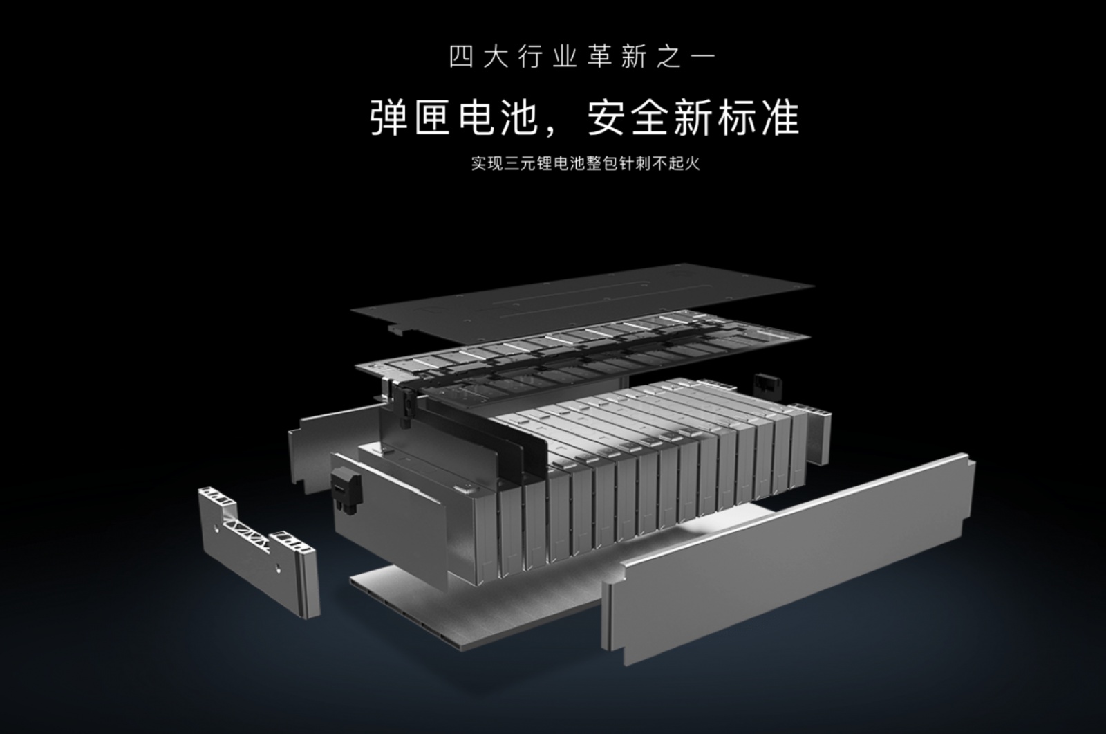 在以往,三元鋰電池的電芯只要有一個起火,那剩下的電芯基可以說是一個都跑不掉,速度太快,根本來不及閃。而廣汽埃安的彈匣電池就是要把電芯起火的苗頭扼殺在搖籃中,讓它沒法燃,即便是燃了,也不能傳遞給其它的電芯。彈匣電池號稱首次實現了三元鋰電池的針刺不起火,重新定義三元鋰電池的安全標準。在結構上,采用了彈匣安全艙的設計,其電池模組看上去就像一個個彈匣安置在電池包之中,也正是因此被命名為彈匣電池。它將每個電池包里的單獨電芯都獨立在安全艙之內,這樣就可以有效地阻隔熱失控電芯的蔓延。