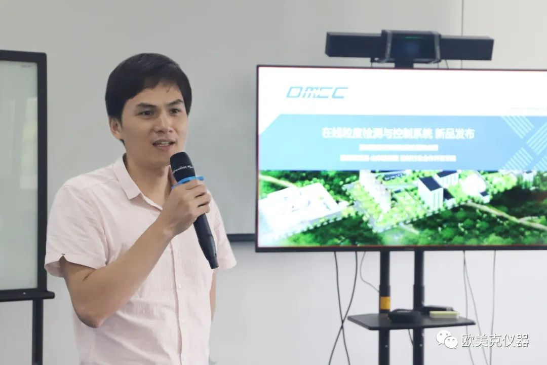 ▲ 歐美克銷售總監吳漢平宣布在線粒度檢測控制系統面市發布