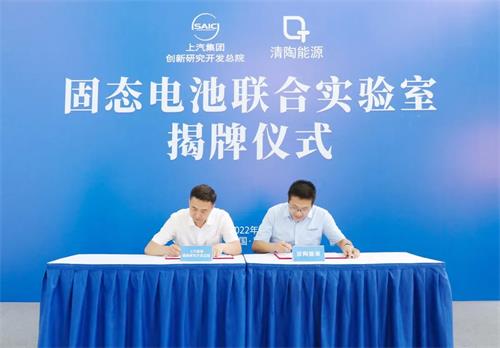 中國粉體網訊 7月6日上午,上汽集團創新研究開發總院與清陶(昆山)能源發展股份有限公司在昆山簽訂協議,正式成立“固態電池聯合實驗室”,并舉行掛牌儀式。上汽創新研究開發總院常務副院長蘆勇,上汽集團規劃部副總經理、清陶能源董事張堅俊,昆山經濟技術開發區管委會副主任秦珊珊等領導出席。