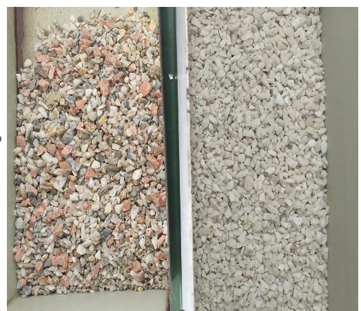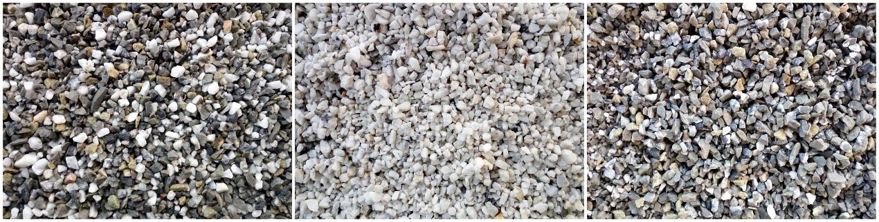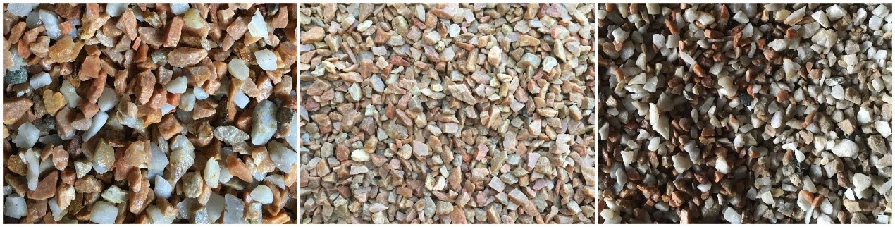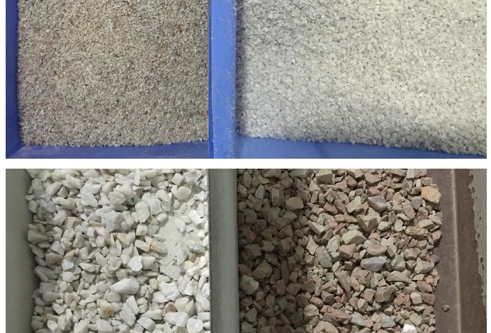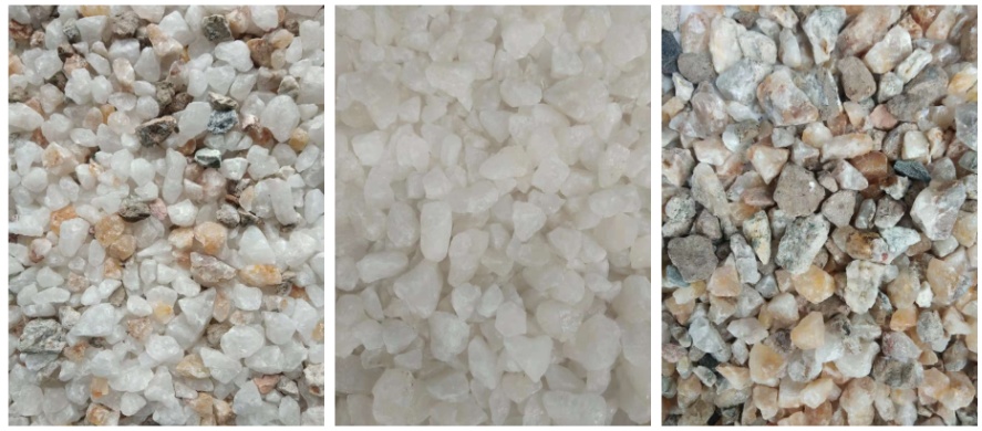 石英石色選圖(圖片從左往右依次為:原料,好料,壞料)