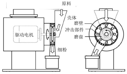 沖擊式磨機是利用圍繞水平或垂直軸高速旋轉的回轉體(棒、錘和葉片等)對物料產生激烈的沖擊和剪切等作用,使其與器壁或固定體以及顆粒之間產生強烈的沖擊碰撞從而使顆粒粉碎的超細粉碎設備,可用于中等硬度物料粉碎,如滑石、大理石和方解石等。入料粒徑一般在8mm以內,產品粒度可達到3~74μm。