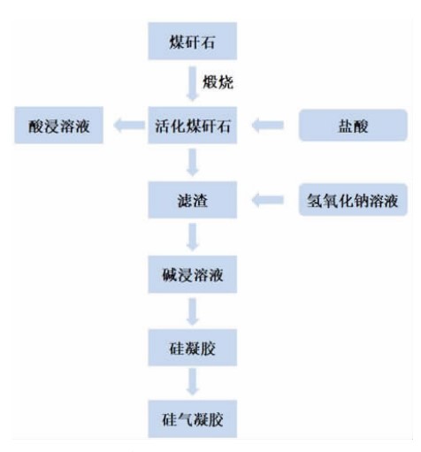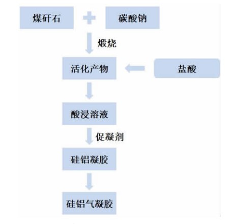 目前,以煤矸石為原料制備氣凝膠的工藝主要分為兩種: