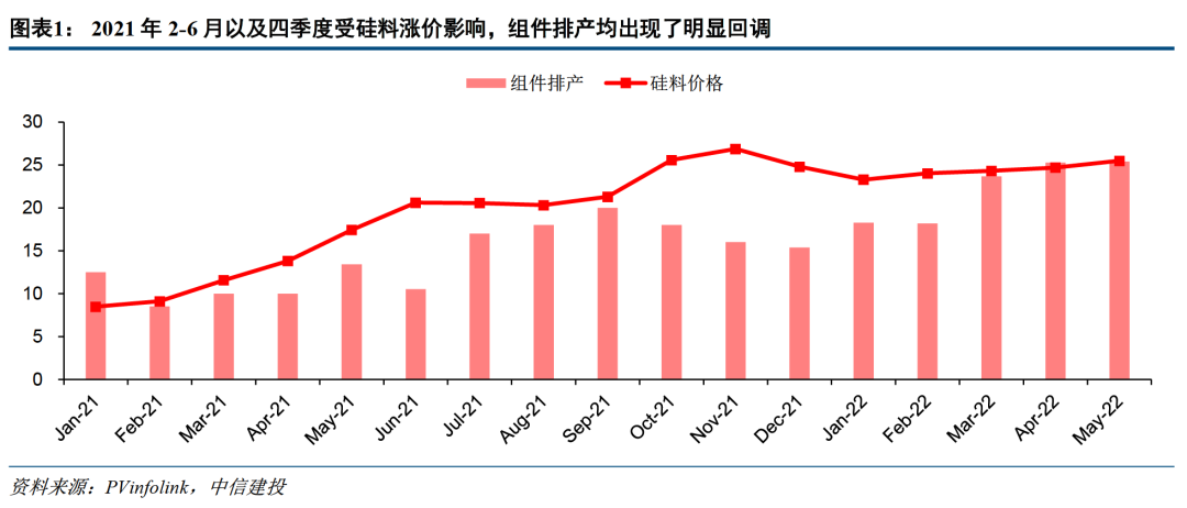 “當下確實發生停產情況,主要源于硅料生產安全事故影響,導致硅料短期供給減少,硅料、硅片價格繼續提升。小組件廠因無法承擔漲價壓力而停產,但一體化組件龍頭本身供應鏈較為完善,生產經營情況持續提升!敝行沤ㄍ叮601066)電新首席分析師朱玥表示,過去兩年產業鏈價格大幅度波動正是如此演繹——大廠出貨量持續提升,小廠失去成長性,當下只是這種情況的延續。