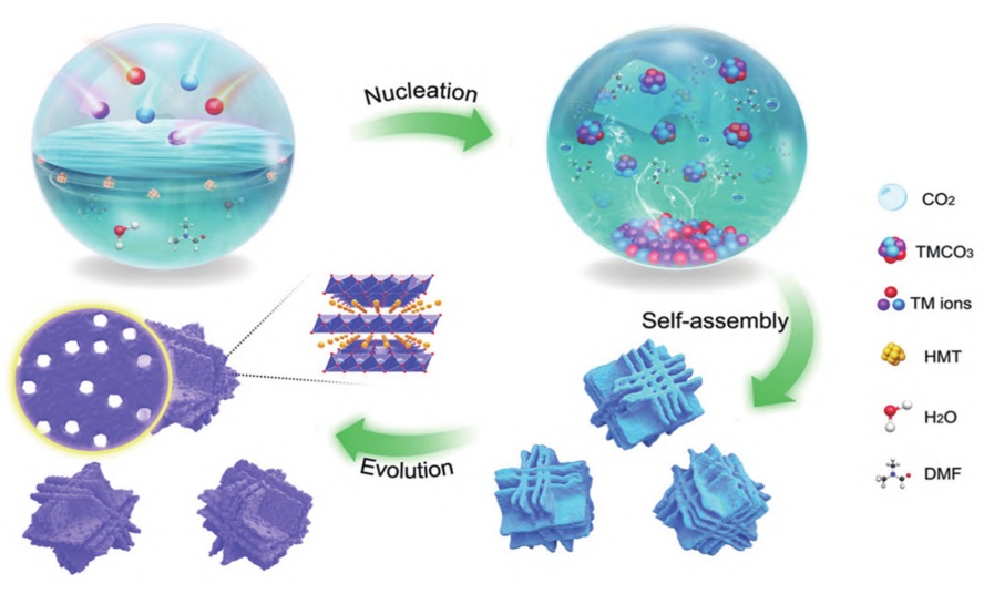 三維微納米富鋰錳基形成過程(圖源:蔡星鵬等,《富鋰錳基正極材料的電壓衰減機理及其改性策略》)