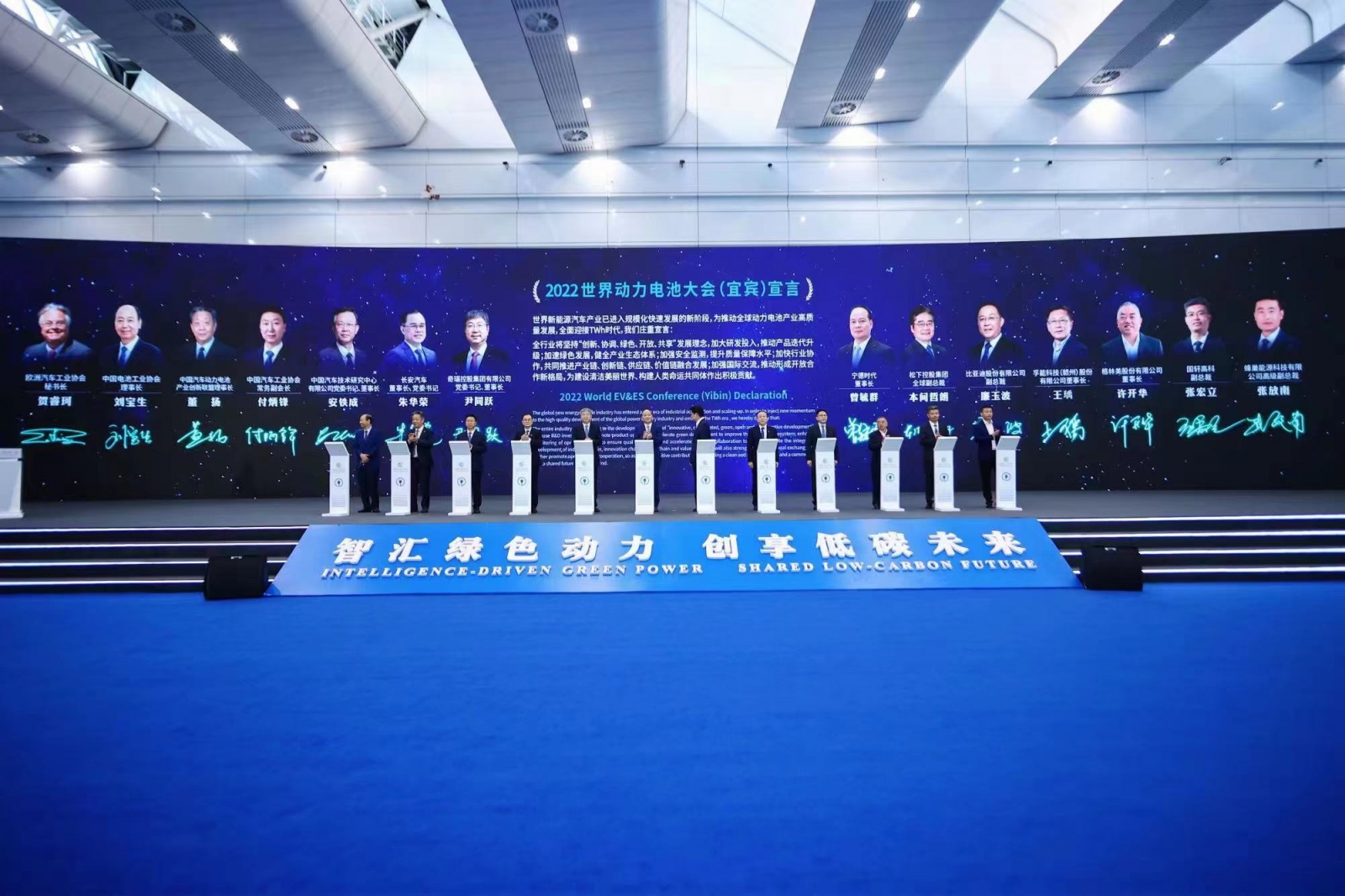 會上,由寧德時代、比亞迪、奇瑞等全球動力電池產業鏈企業共同發布了2022世界動力電池大會(宜賓)宣言。
