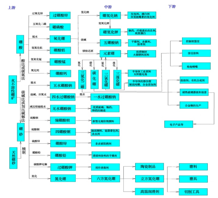 我國硼產業起步較早,硼產業鏈已具有一定的基礎。