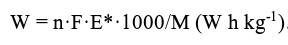 根據以上公式以及能斯特方程,電池的比能量和比容量可以用以下公式計算: