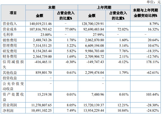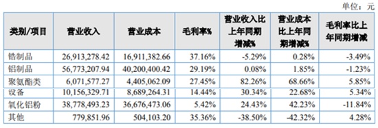公開資料顯示,陶瓷制品及粉體是公司主營產品,報告顯示的鋁制品及鋯制品主要包括氧化鋁、氧化鋯、硅酸鋯、鋯鋁復合等耐磨陶瓷微珠和部件。氧化鋁粉營業收入3878萬元,占整體收入的28%,是公司第二大營收項目,上半年該項目產品的毛利率下降11.84%,導致公司整體凈利潤較上年同期下降 24.82%。